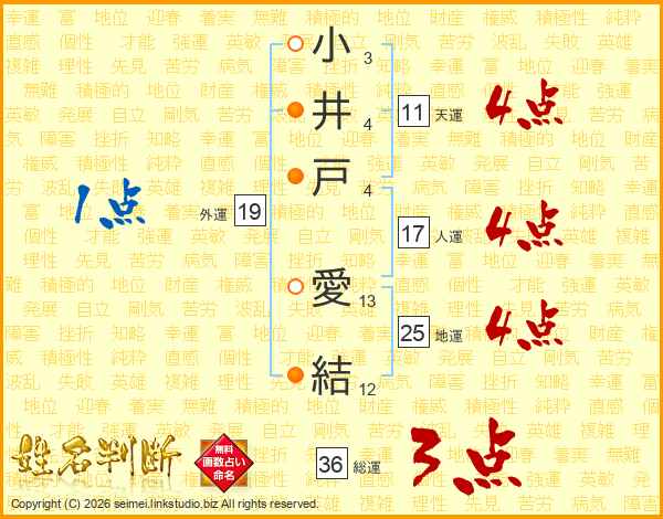 小(3画)井(4画)戸(4画) 愛(13画)結(12画)