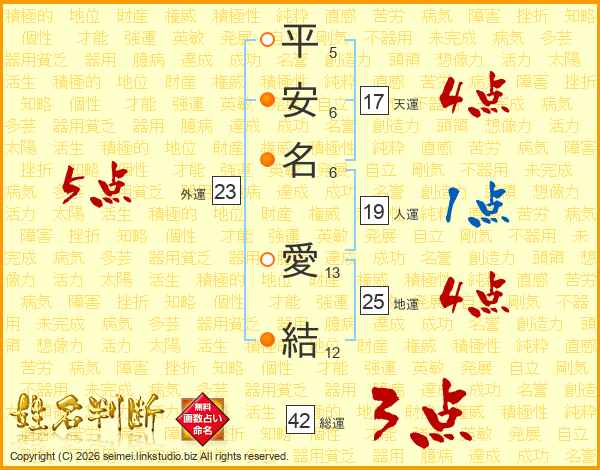 平安名愛結さんの天運は17画の4点!