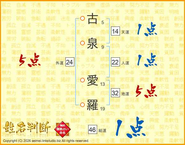古泉愛羅さんの総運は46画の1点!