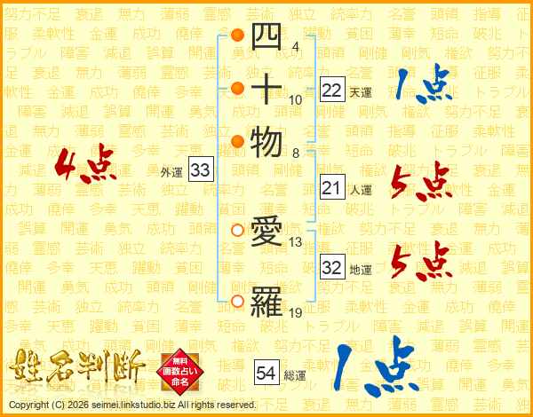 四(4画)十(10画)物(8画) 愛(13画)羅(19画)