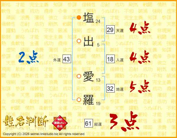 塩出愛羅さんの外運は43画の2点!