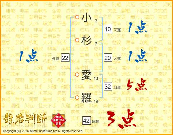 小杉愛羅さんの地運は32画の5点!