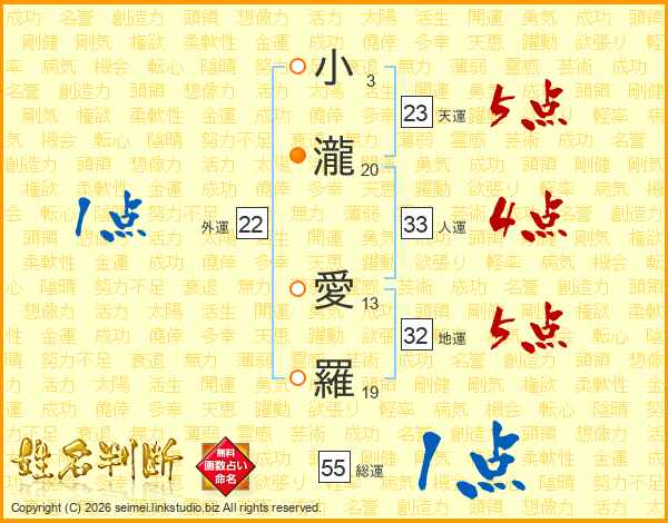 小瀧愛羅さんの人運は33画の4点!
