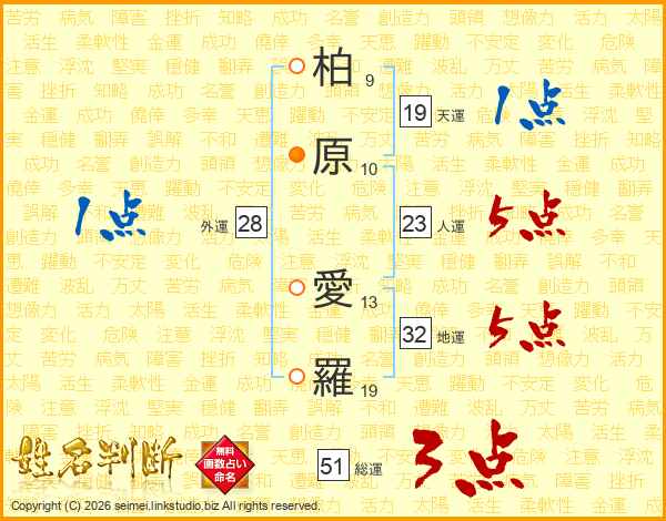 柏原愛羅さんの総運は51画の3点!