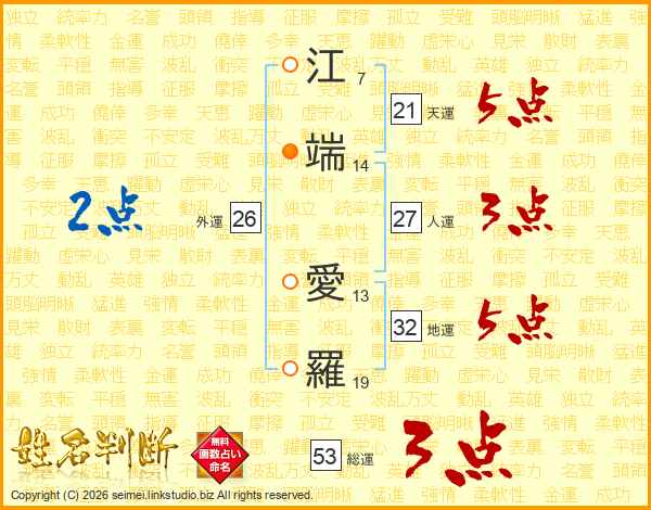 江端愛羅さんの総運は53画の3点!