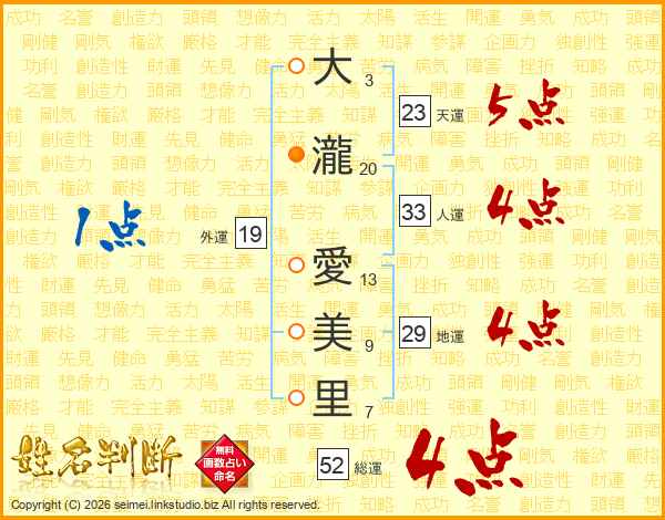 大瀧愛美里さんの人運は33画の4点!
