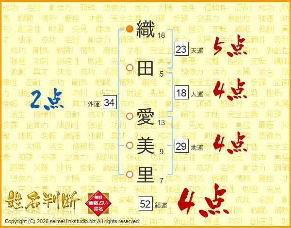 織田愛美里さんの総運は52画の4点!