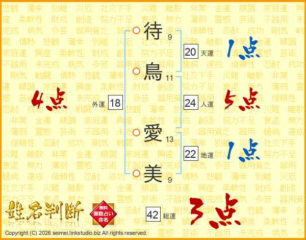待鳥愛美さんの地運は22画の1点!