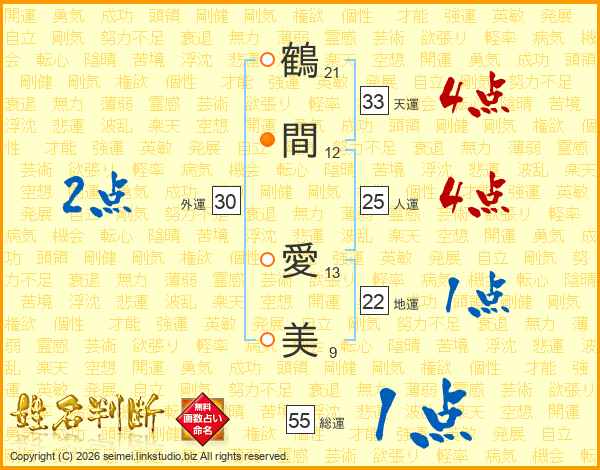 鶴間愛美さんの天運は33画の4点!