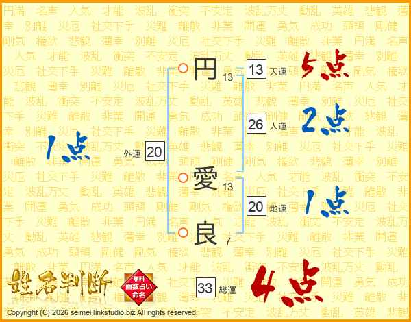 円(13画) 愛(13画)良(7画)