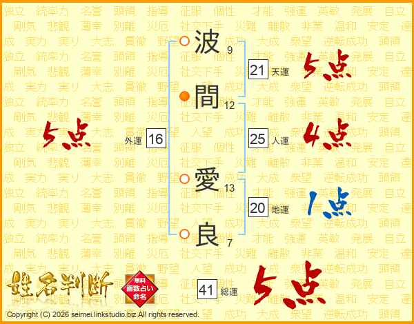波間愛良さんの総運は41画の5点!