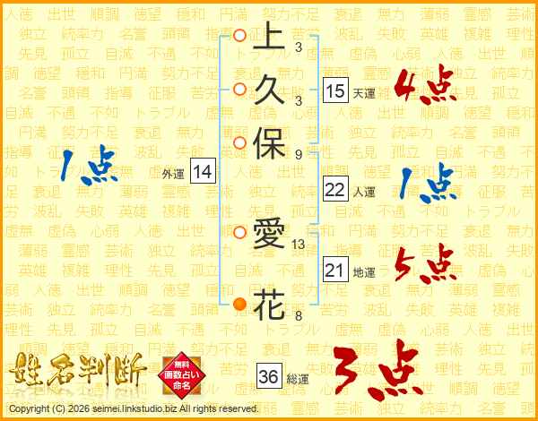 上久保愛花さんの外運は14画の1点!