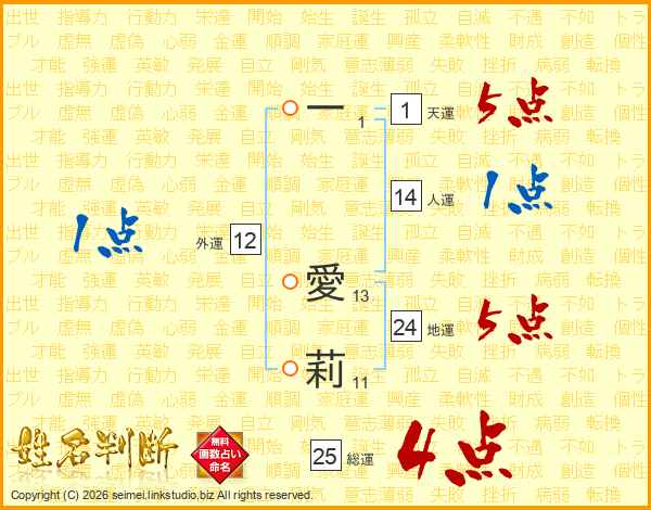 一愛莉さんの総運は25画の4点!