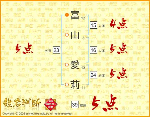 富山愛莉さんの総運は39画の5点!