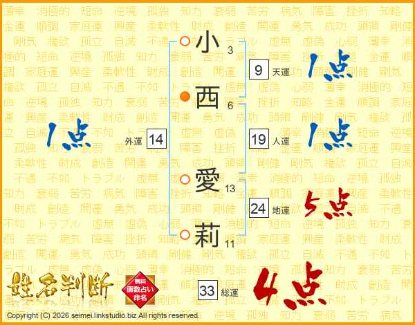 小西愛莉さんの総運は33画の4点!