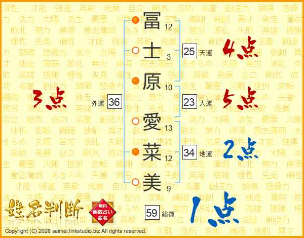 冨士原愛菜美さんの天運は25画の4点!