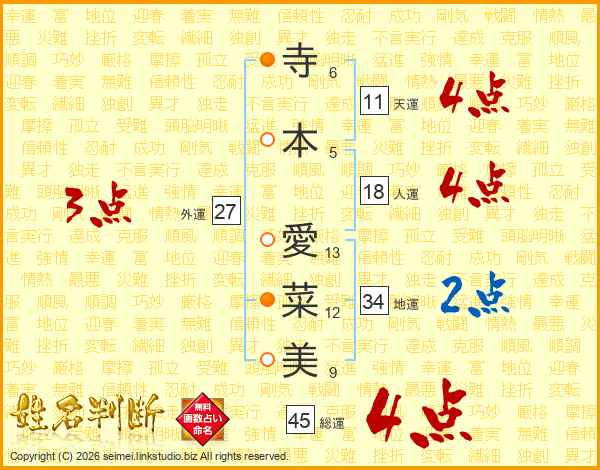 寺本愛菜美さんの天運は11画の4点!