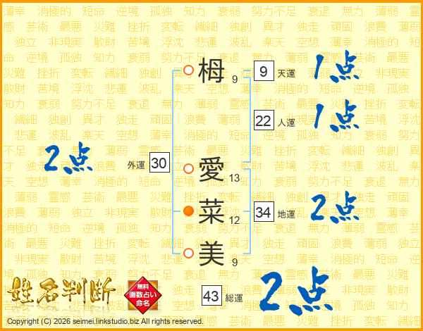 栂愛菜美さんの総運は43画の2点!