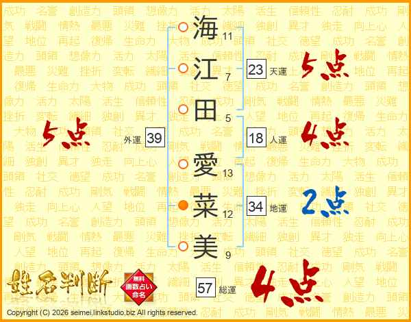 海江田愛菜美さんの外運は39画の5点!