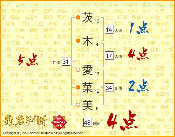 茨木愛菜美さんの総運は48画の4点!