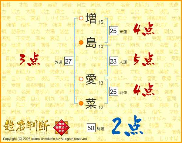 増(15画)島(10画) 愛(13画)菜(12画)