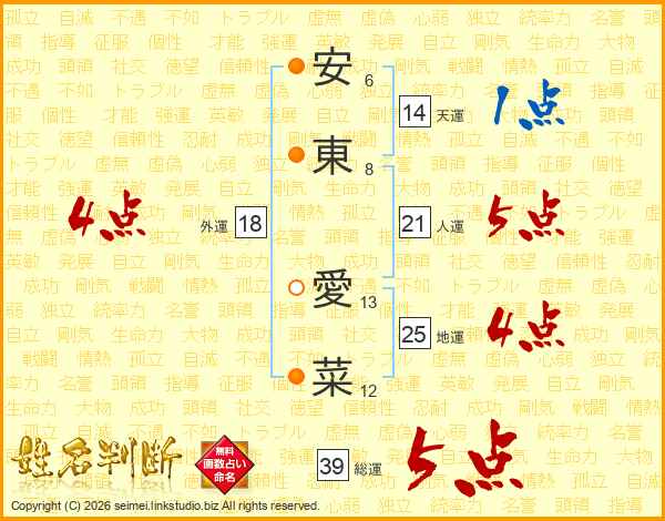 安東愛菜さんの総運は39画の5点!