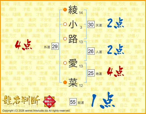 綾小路愛菜さんの外運は29画の4点!