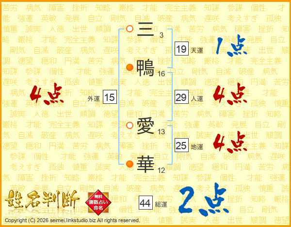 三鴨愛華さんの総運は44画の2点!