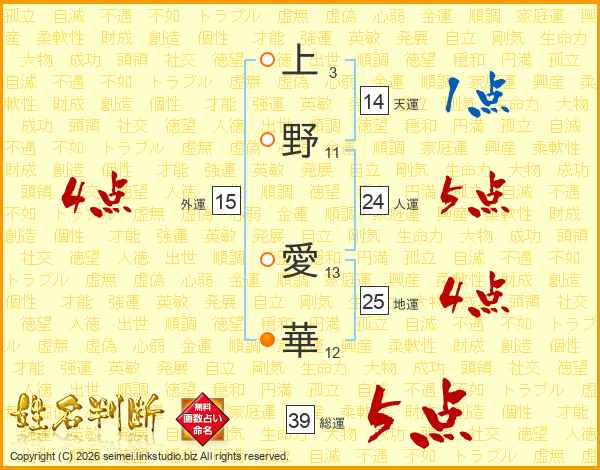 上野愛華さんの総運は39画の5点!