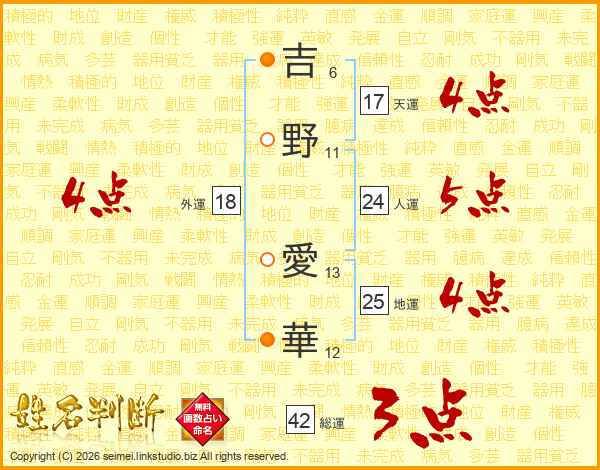 吉野愛華さんの天運は17画の4点!