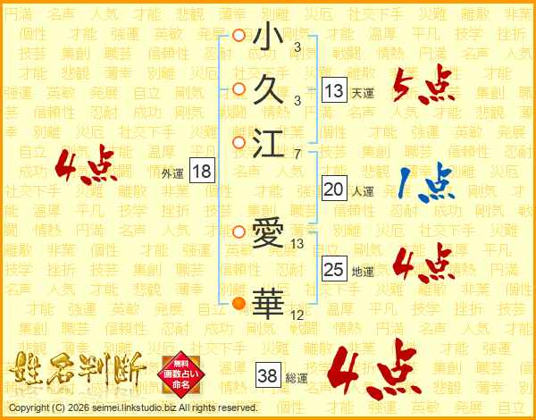 小久江愛華さんの総運は38画の4点!