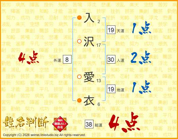 入(2画)沢(17画) 愛(13画)衣(6画)