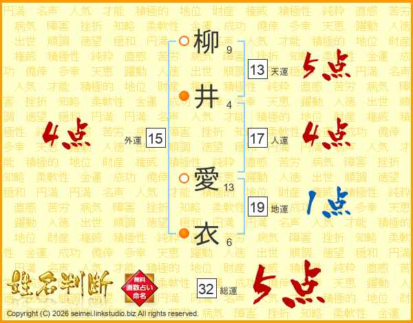柳井愛衣さんの総運は32画の5点!