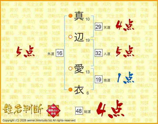 真(10画)辺(19画) 愛(13画)衣(6画)