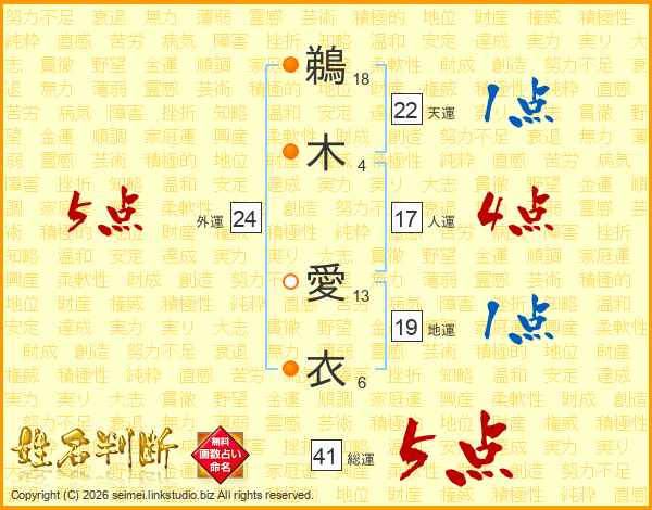 鵜木愛衣さんの総運は41画の5点!