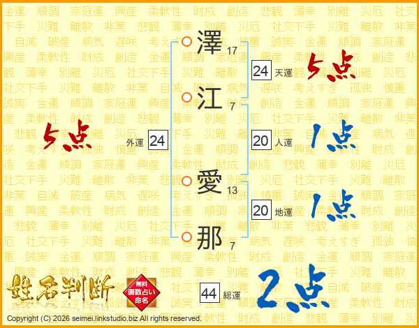 澤江愛那さんの総運は44画の2点!