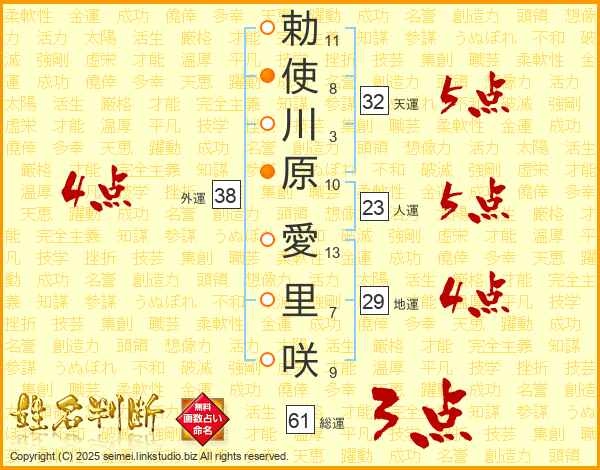 勅使川原愛里咲さんの外運は38画の4点!