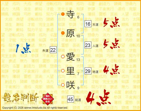 寺原愛里咲さんの総運は45画の4点!