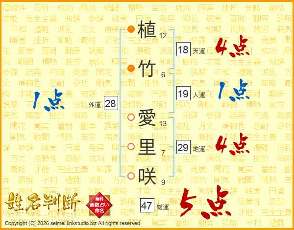植竹愛里咲さんの総運は47画の5点!