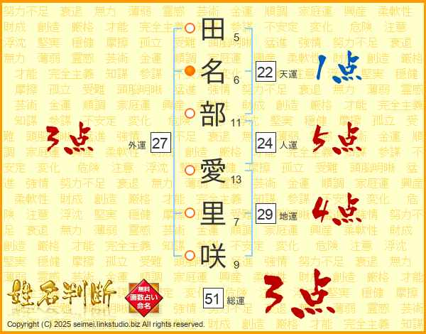 田名部愛里咲さんの総運は51画の3点!
