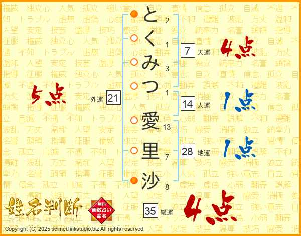 とくみつ愛里沙さんの総運は35画の4点!