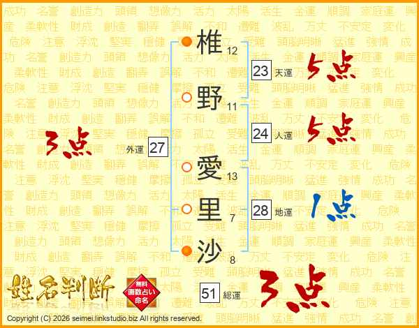 椎野愛里沙さんの総運は51画の3点!