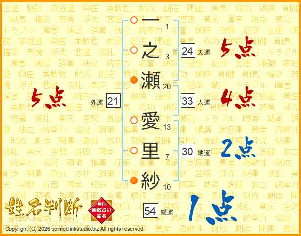 一之瀬愛里紗さんの総運は54画の1点!