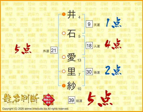 井石愛里紗さんの総運は39画の5点!