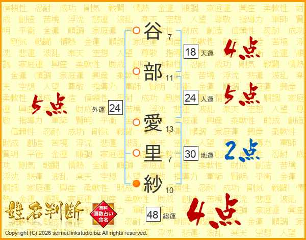 谷部愛里紗さんの総運は48画の4点!
