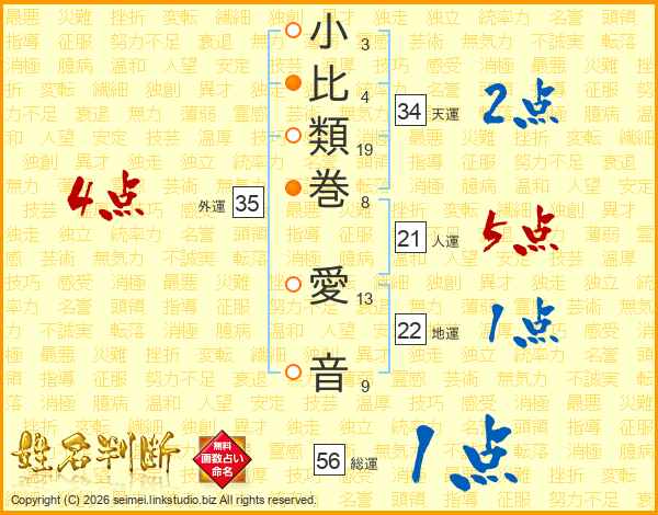 小(3画)比(4画)類(19画)巻(8画) 愛(13画)音(9画)