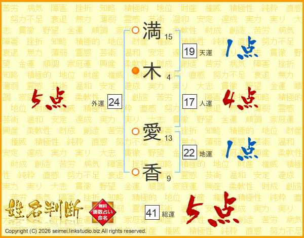 満木愛香さんの総運は41画の5点!