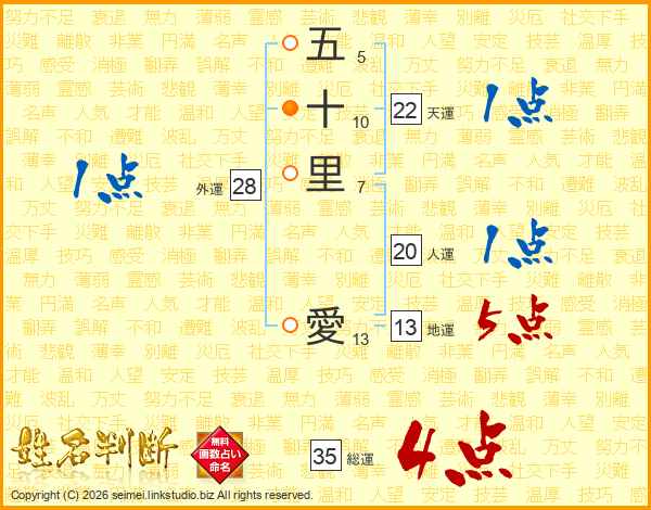 五十里愛さんの総運は35画の4点!