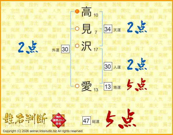 高見沢愛さんの総運は47画の5点!