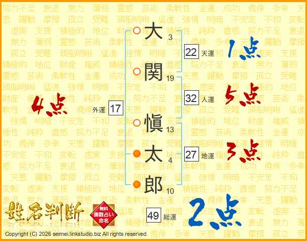 大関愼太郎さんの総運は49画の2点!